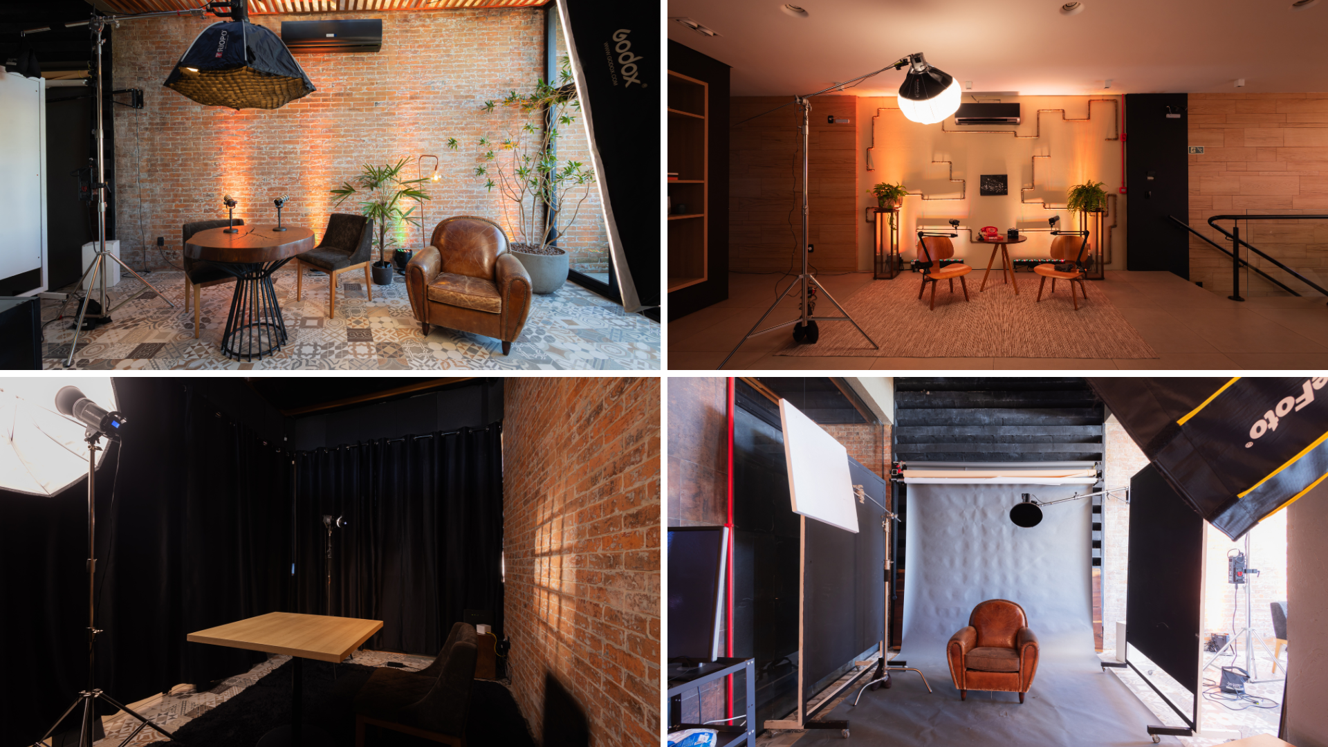 - Facilidade de Uso: Nosso estúdio é projetado para ser versátil, contamos com uma sala isolada especialmente para podcast e também com várias possibilidades de cenários alternativos.